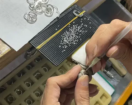 HonHo’s expert craftsmen employ advanced micro-welding techniques to unite intricate components with unparalleled precision. Each piece undergoes rigorous quality control during our seamless assembly process, ensuring structural integrity and flawless aesthetics. Our state-of-the-art joining methods create durable bonds that maintain both beauty and longevity in every jewelry piece.
